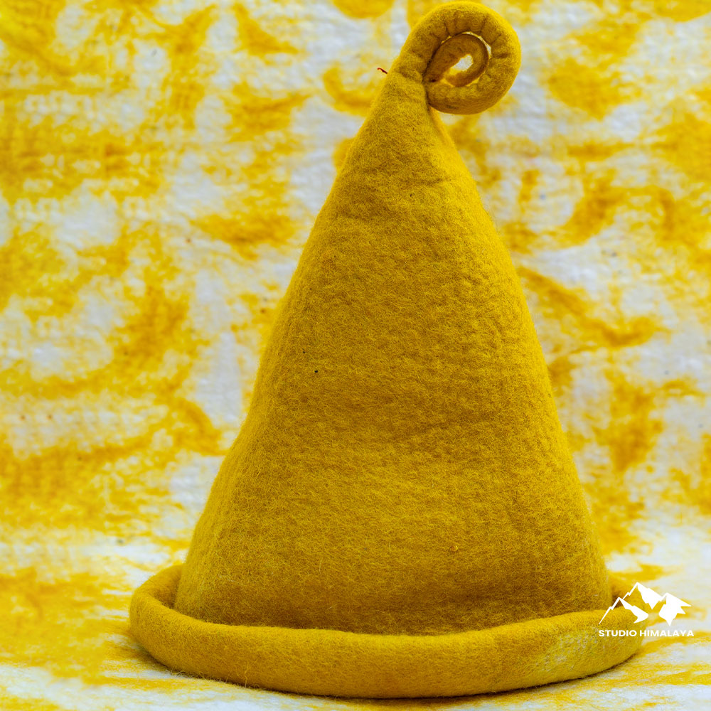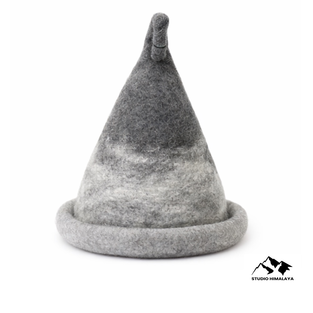 This cone-shaped wool hat is lovingly handcrafted by skilled Nepalese craftswomen using thick, high-quality felted wool. Each piece is unique in texture and finish, offering warmth, comfort, and a distinctive artisanal look. Soft, breathable, and naturally insulating, it is perfect for winter wear or as a thoughtful, handcrafted gift.