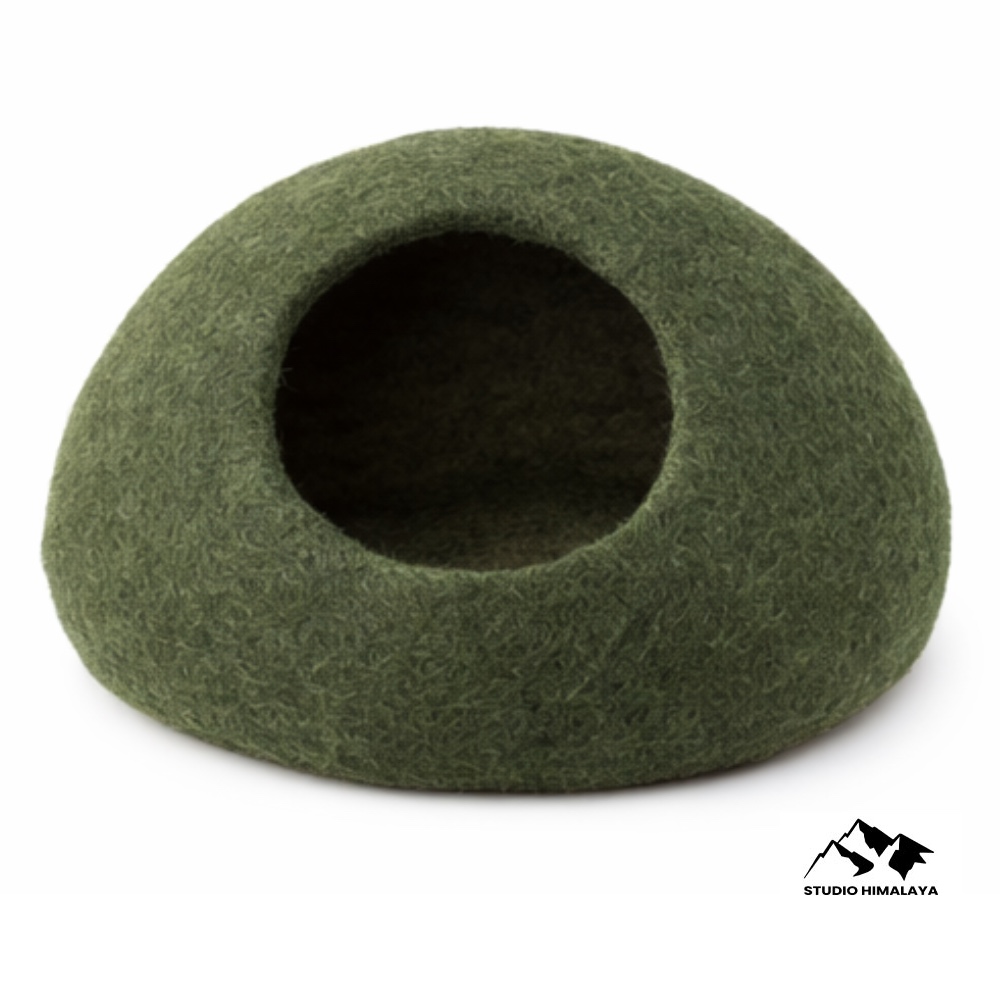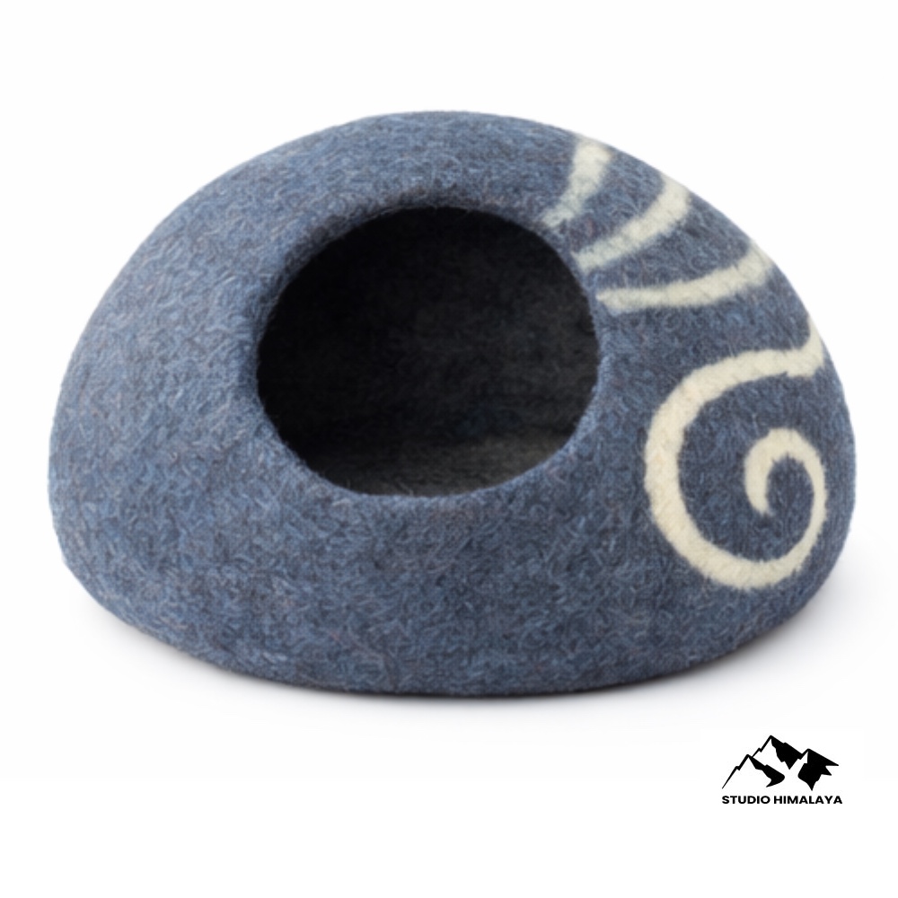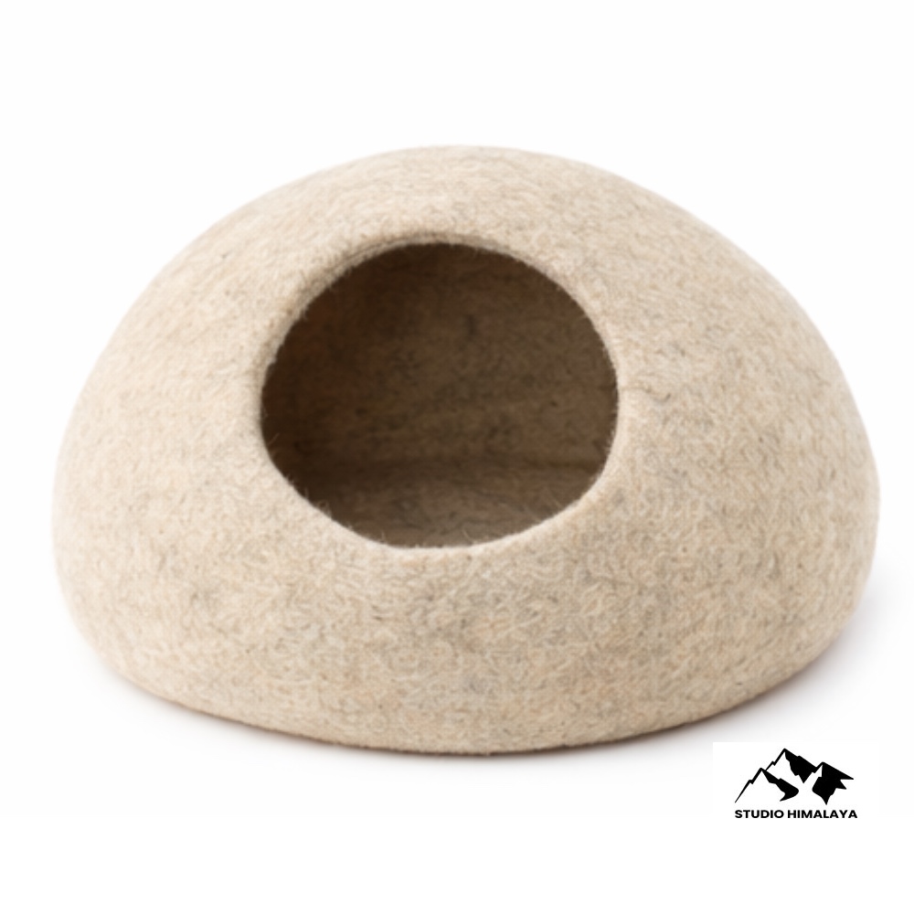 This cozy felt cat house is carefully handcrafted by skilled Nepalese craftswomen using thick, natural wool. Designed to provide warmth, comfort, and a sense of security, the enclosed dome shape creates a perfect resting and hiding space for cats. Soft, breathable, and naturally insulating, it helps keep your pet comfortable in all seasons. Each piece is handmade, making every cat house unique in shape and texture.